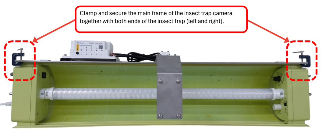 Clamp the main frame of the insect trap camera together with both ends of the insect trap (left and right).