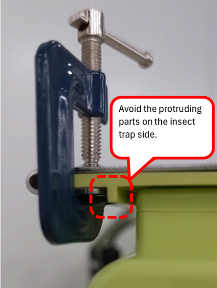 When securing the insect trap camera with clamps, note that there are protruding parts on the insect trap side. Please pay attention to the following points.