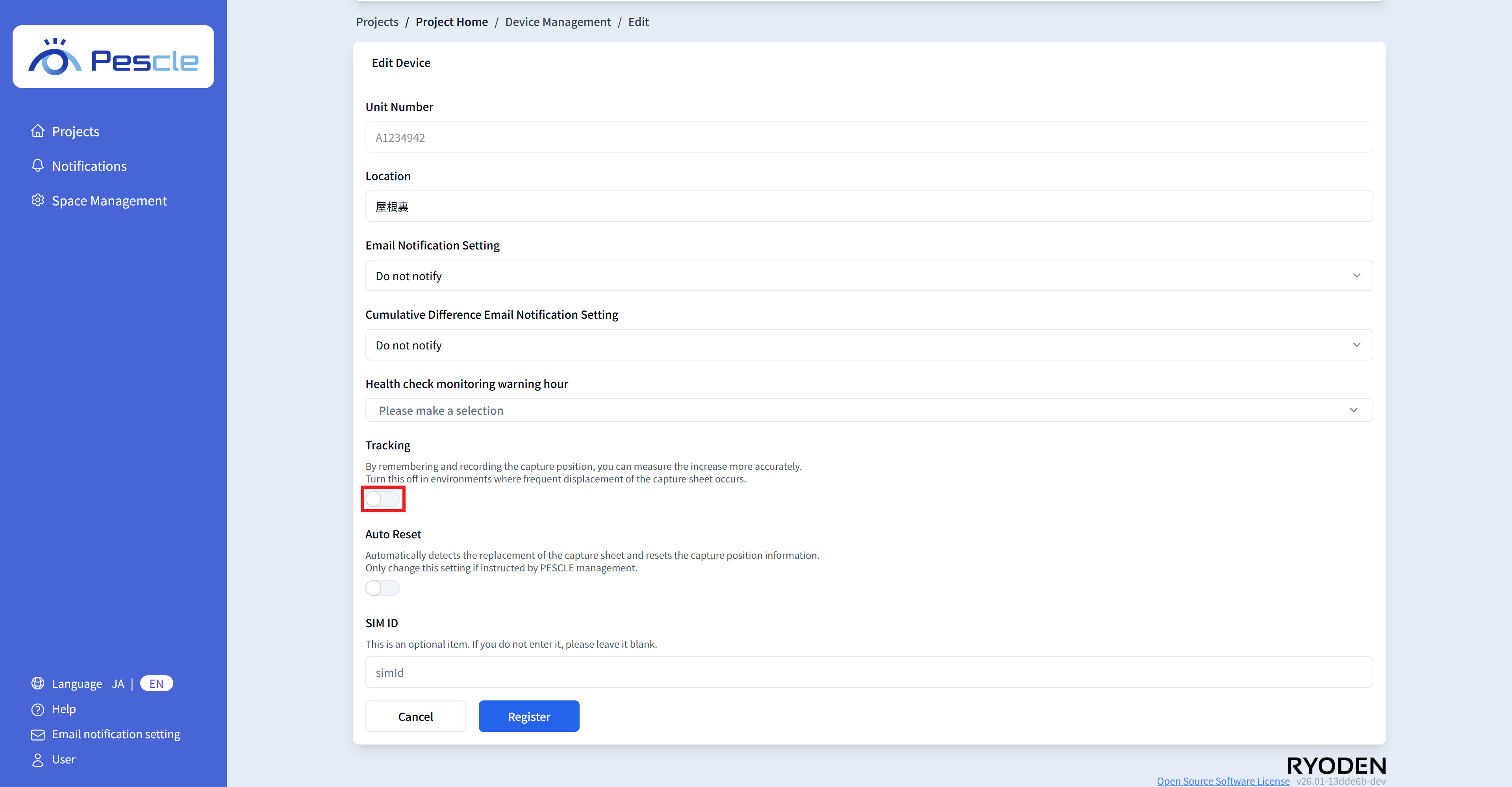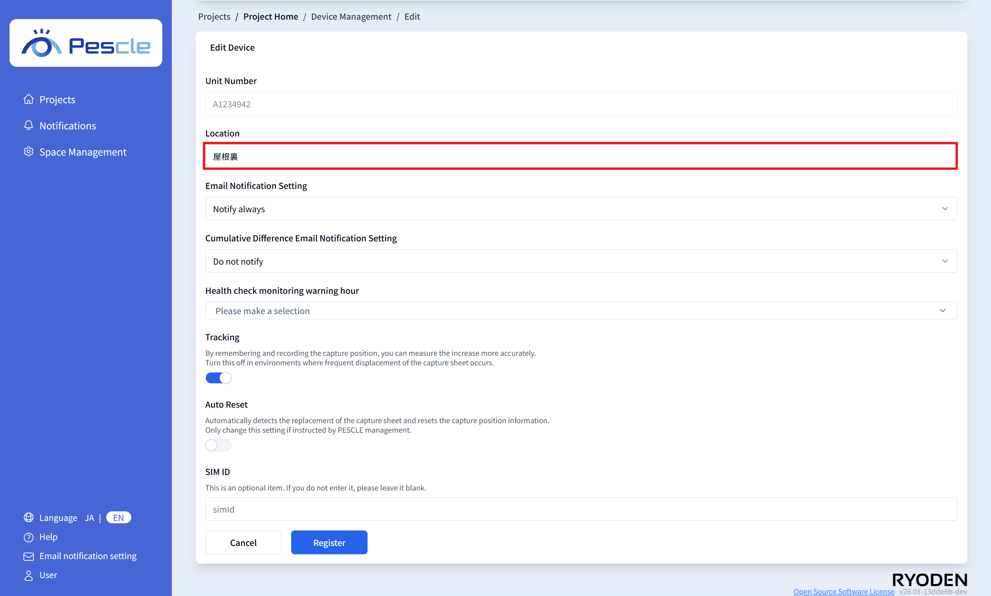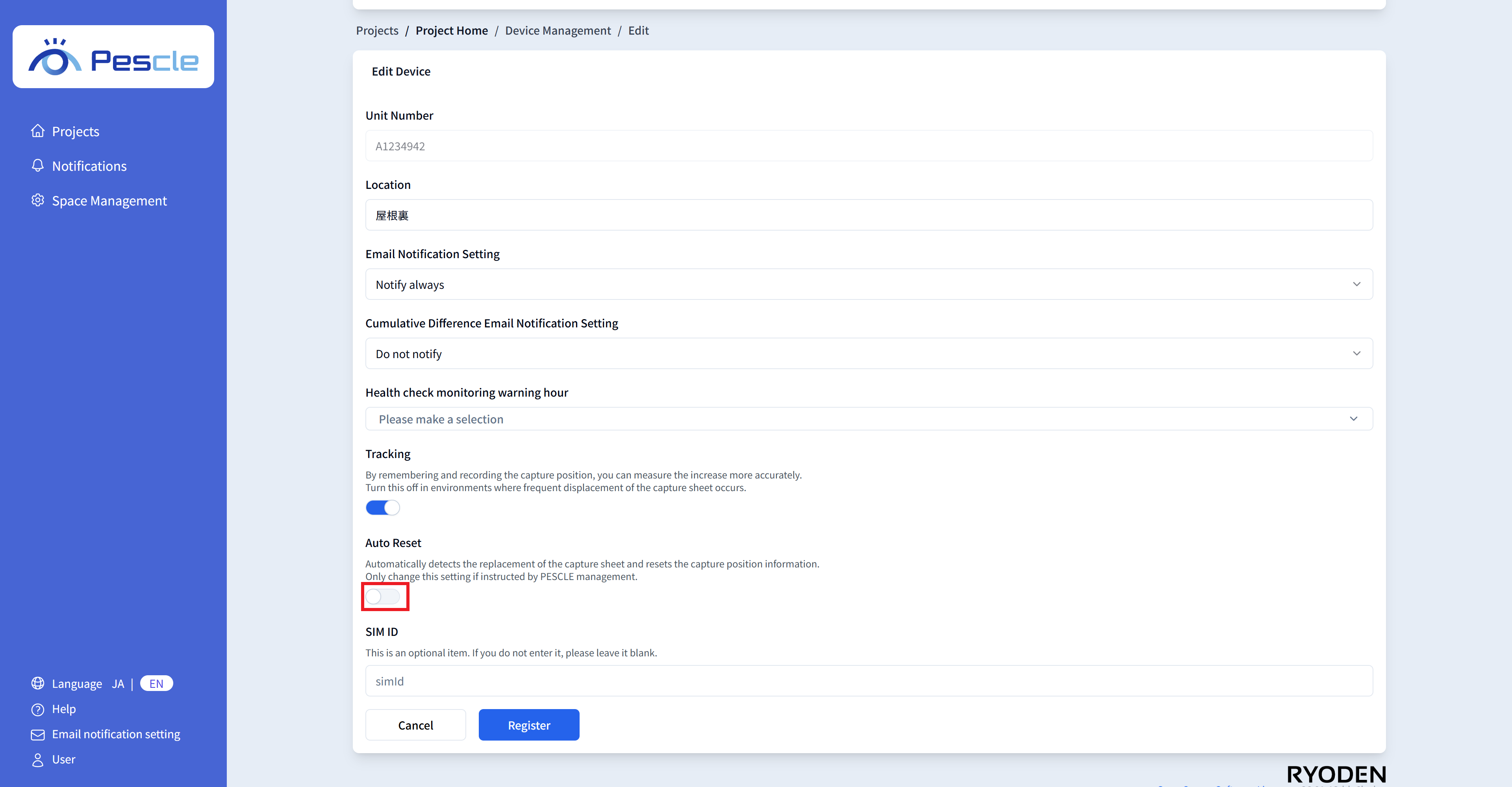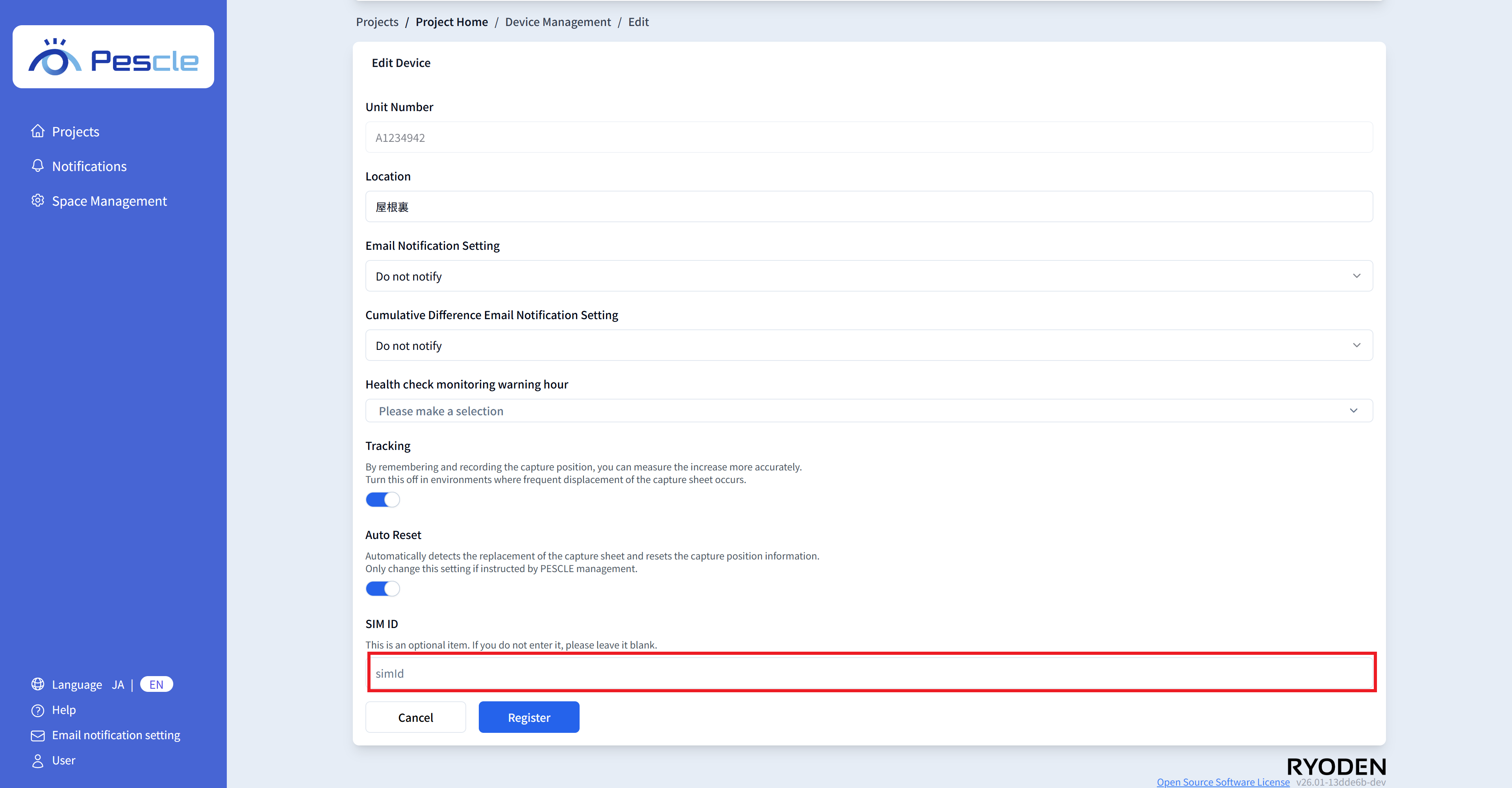 You can enter the SIM number of the insect trap camera. This is optional, so there is no problem if you do not enter it.