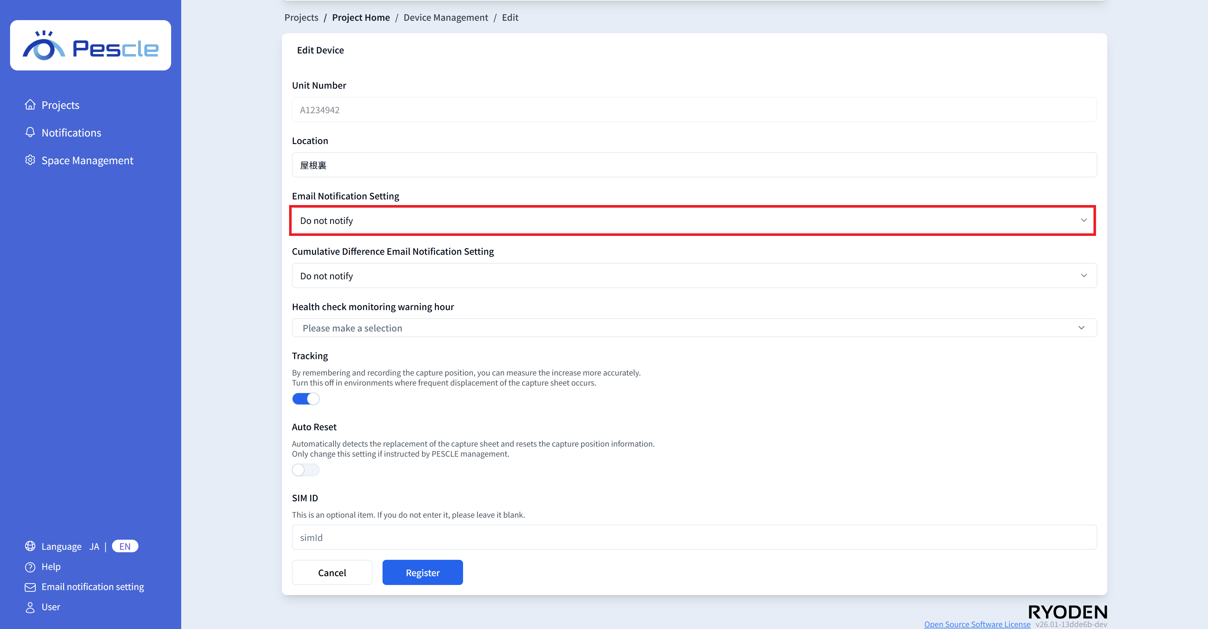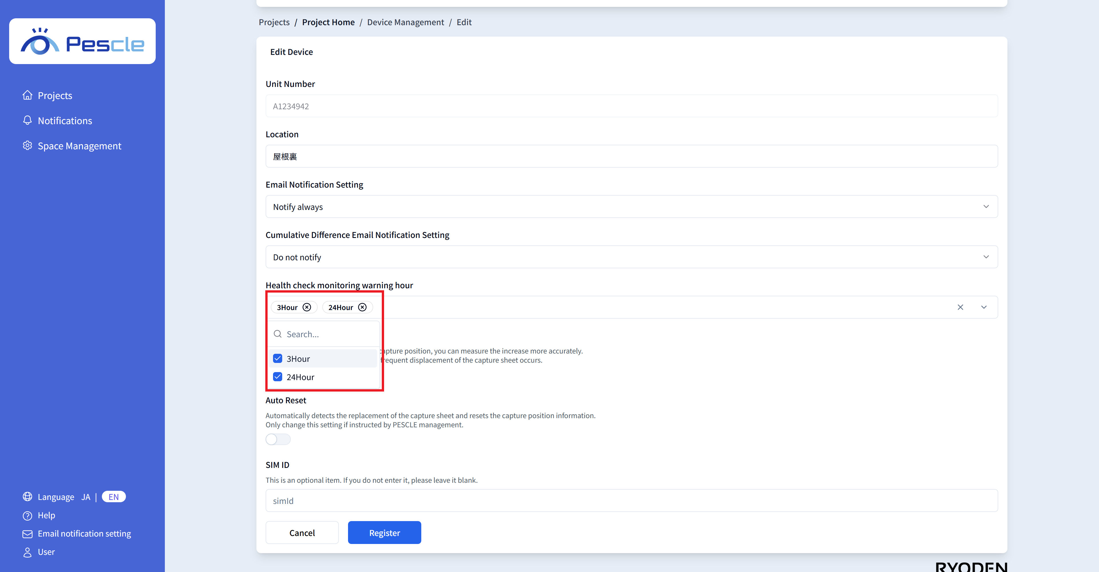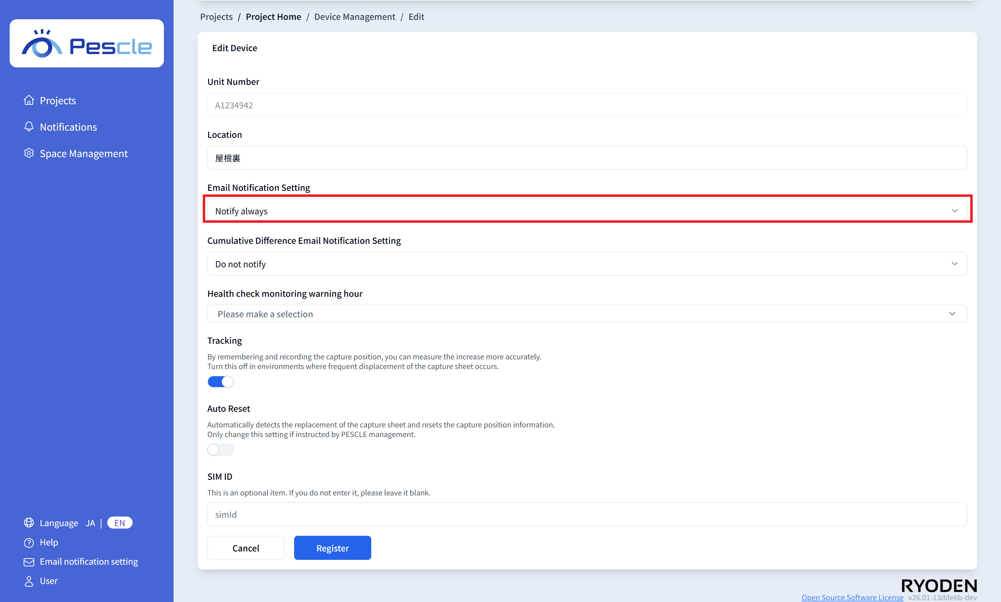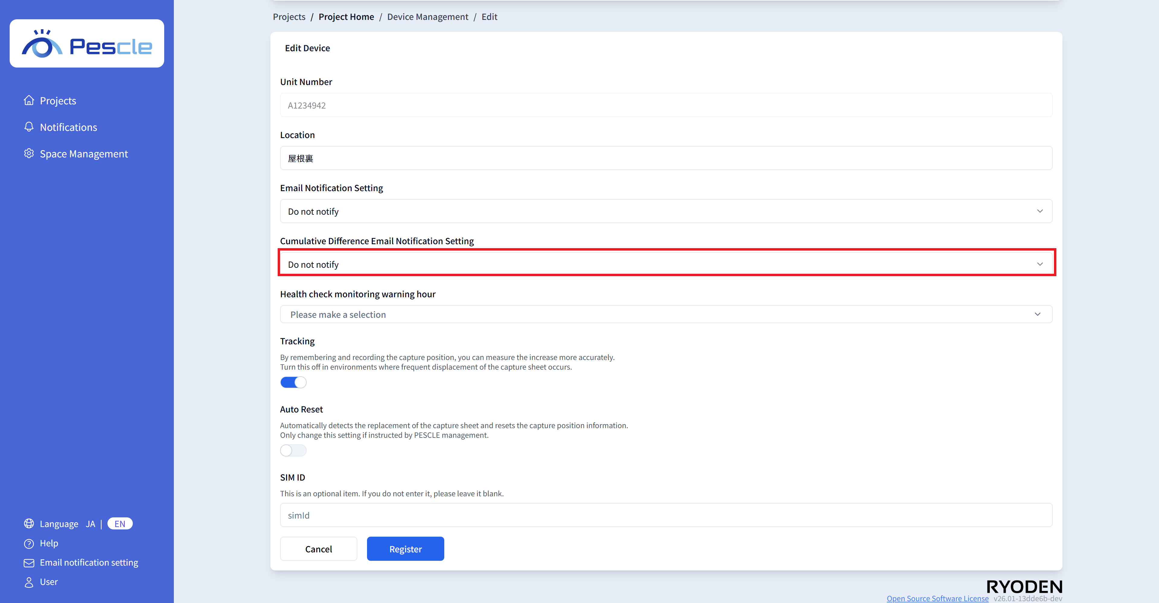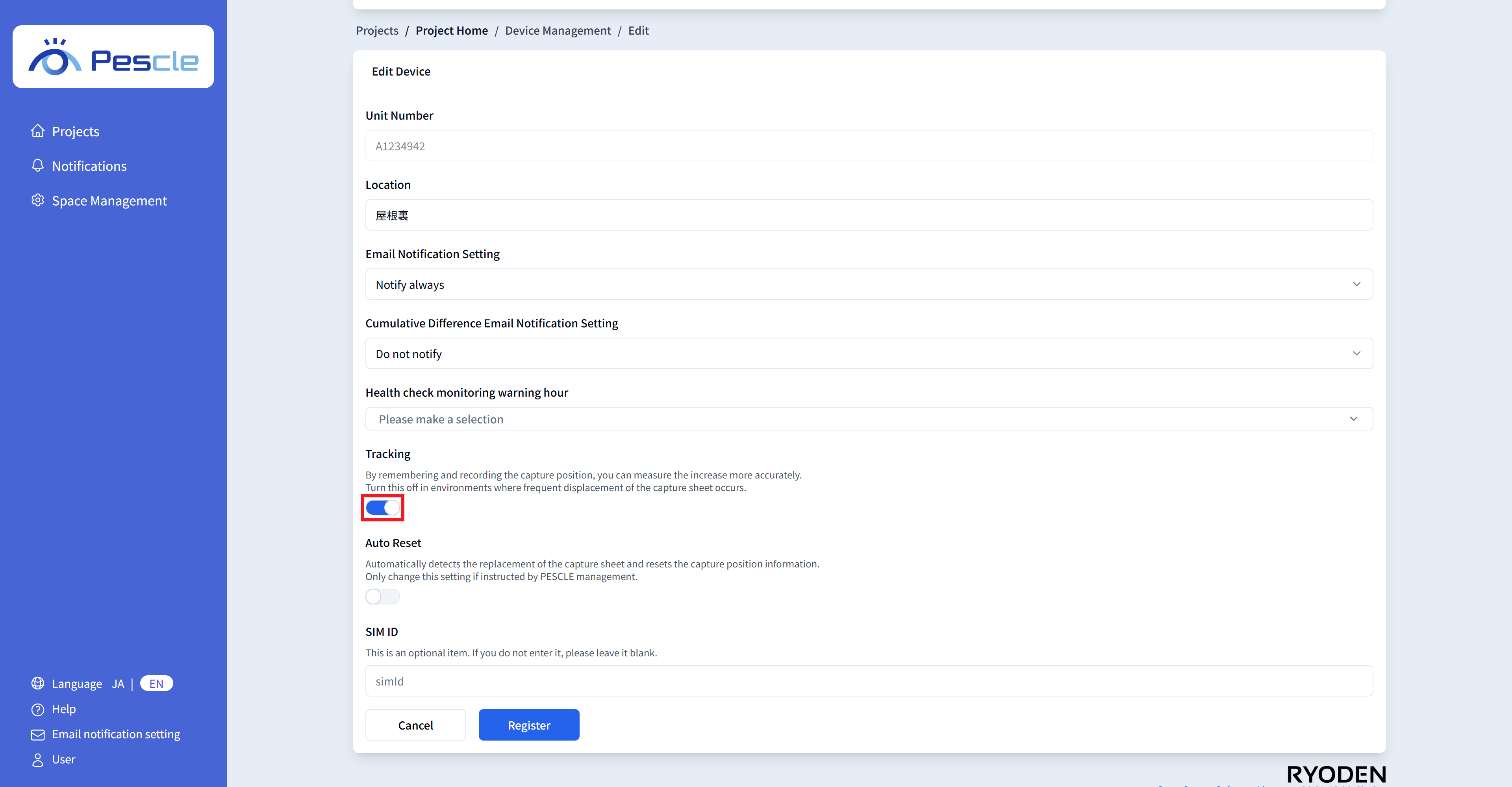 You can enter the SIM number of the insect trap camera. This is optional, so there is no problem if you do not enter it.