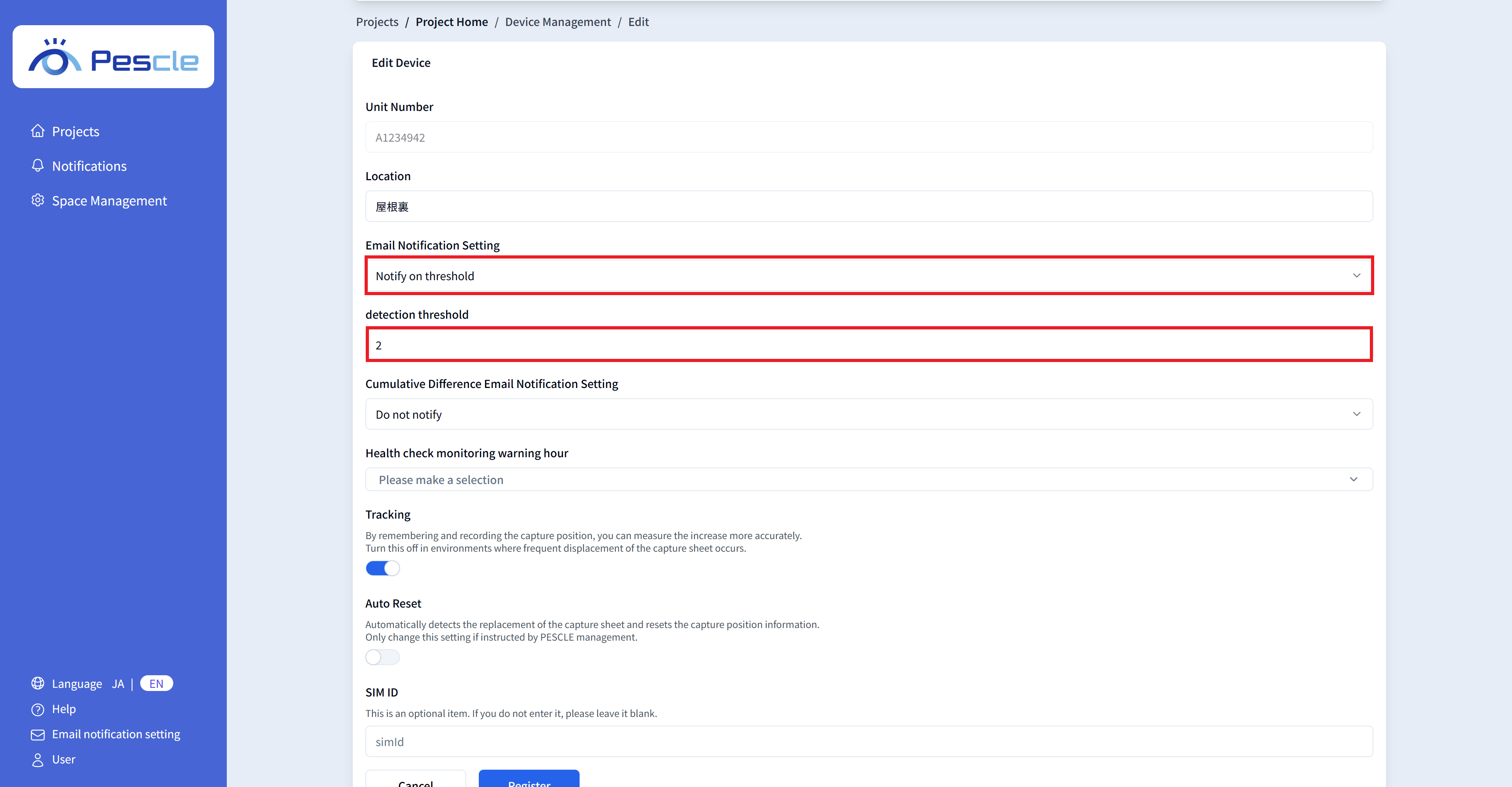 By configuring the heartbeat monitoring settings, you can receive email notifications to project administrators when the insect trap camera is not operating properly.