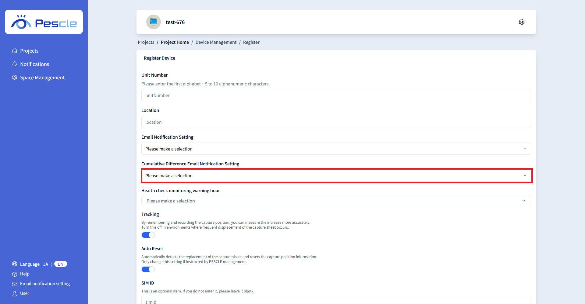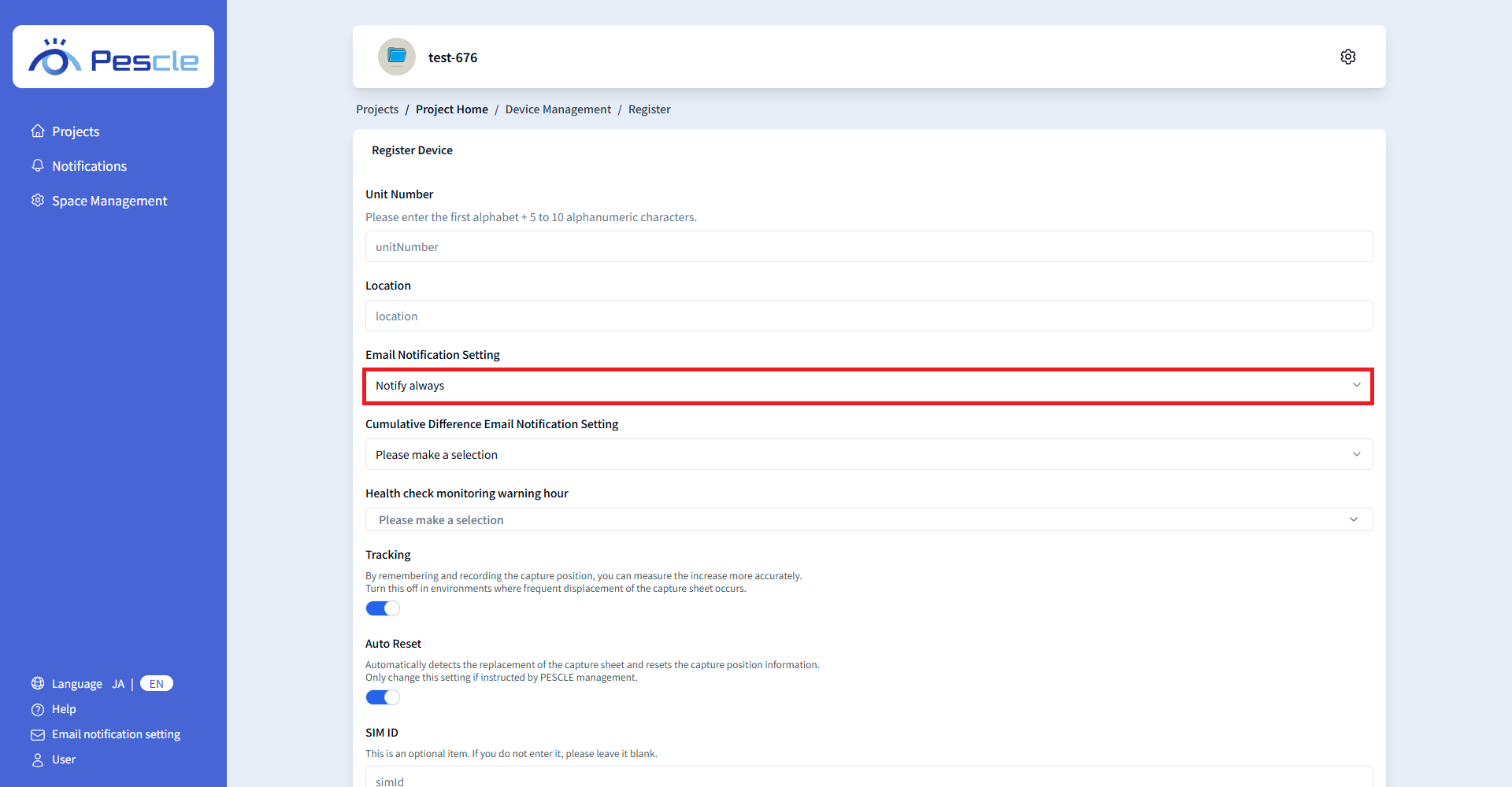 You can enter the SIM number for the insect trap camera. This is optional, so it is not a problem if you do not enter it.