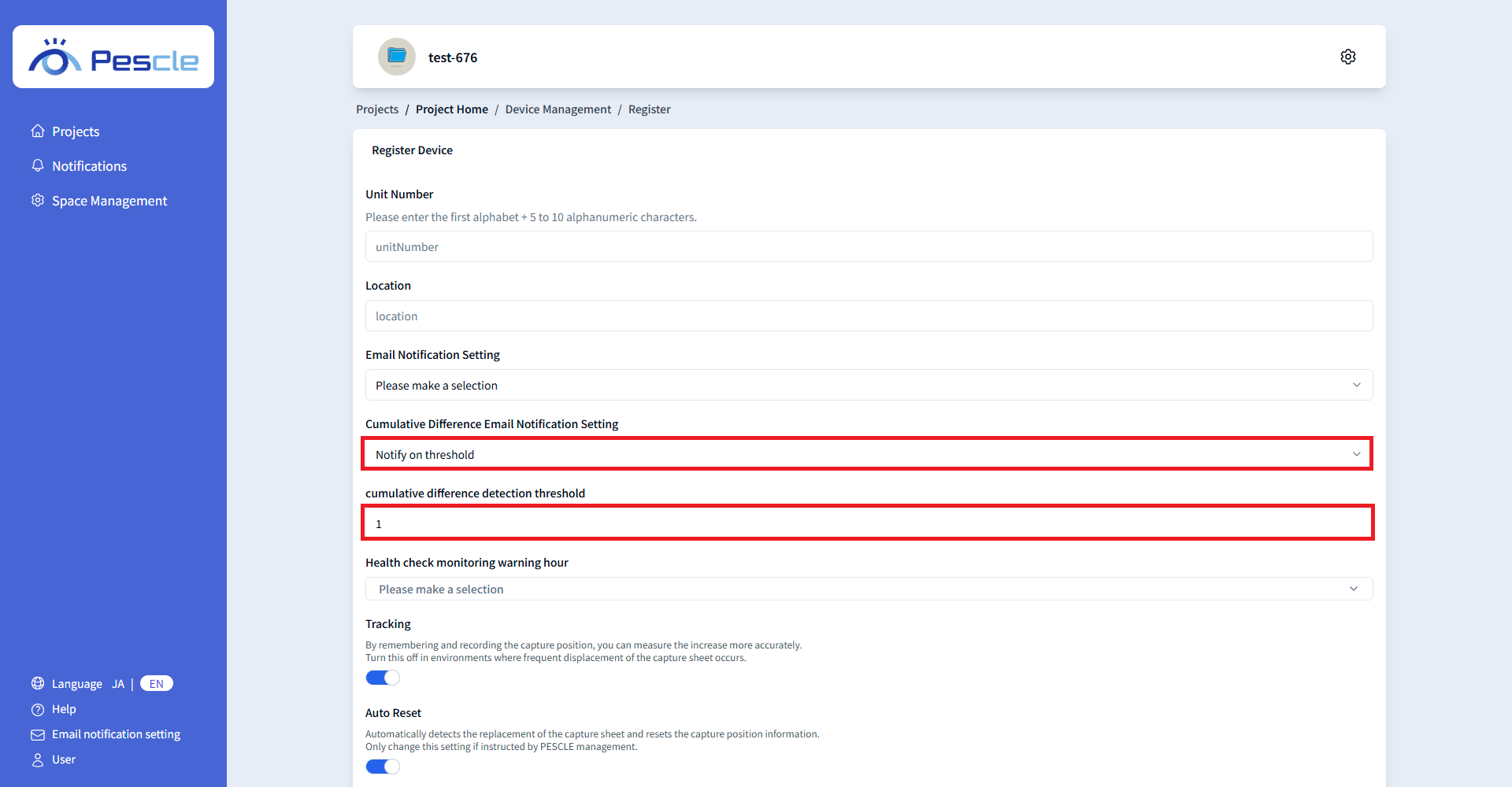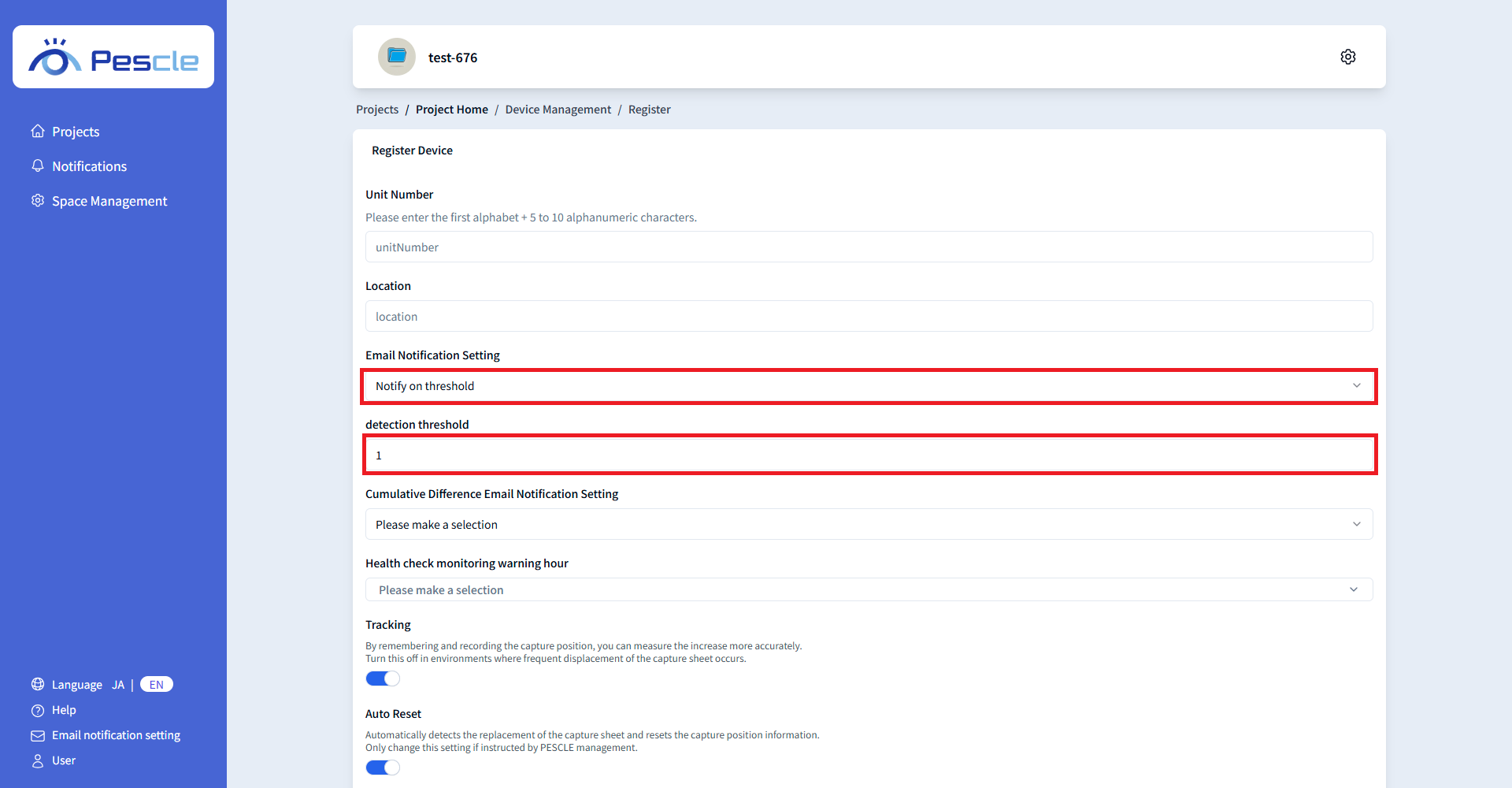 If you want to notify by threshold, select “Notify by threshold.” An email will be sent when insects above the threshold are detected cumulatively. When input is complete, click the “Change” button.