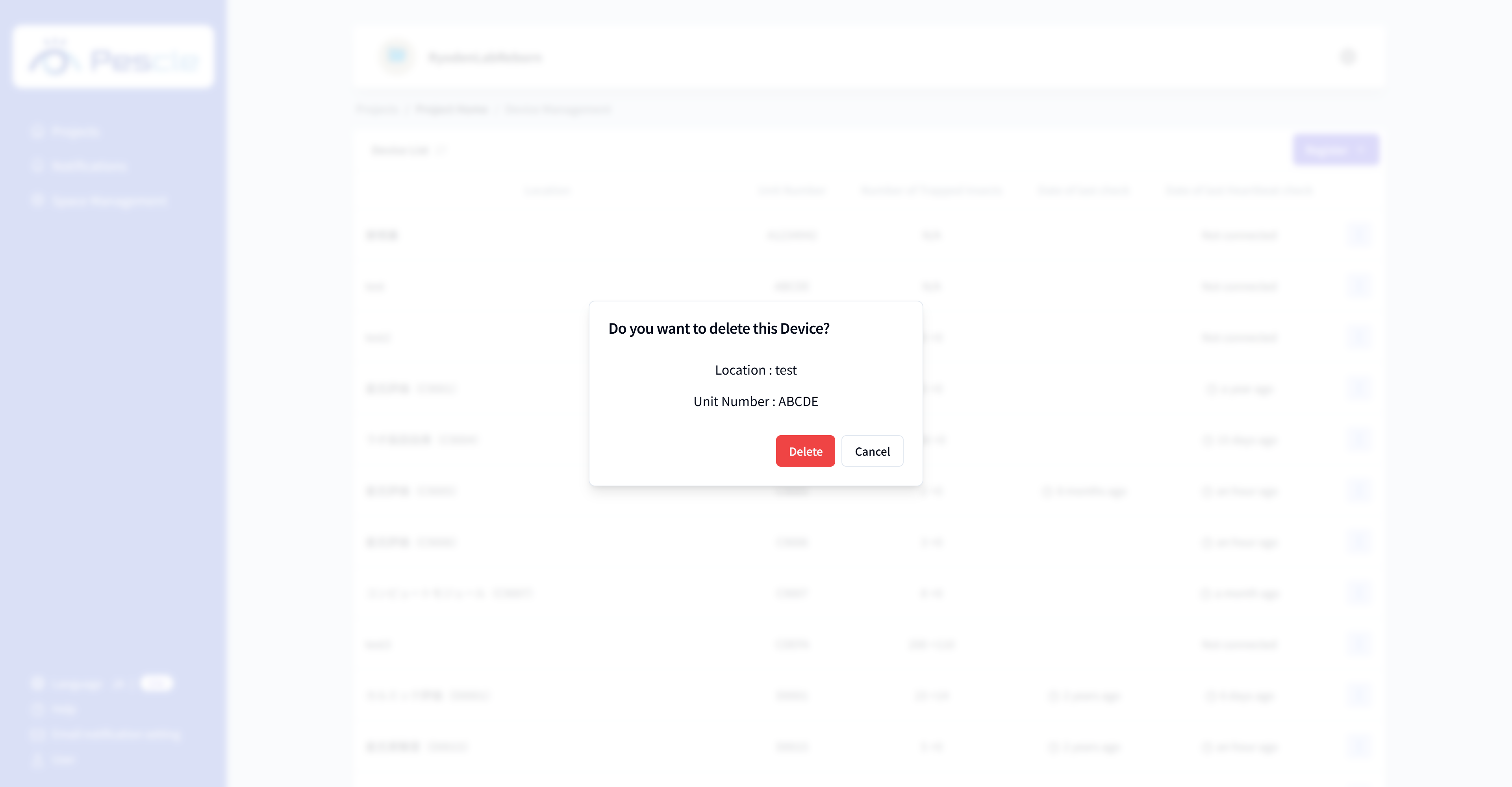 When a dialog appears asking you to confirm the deletion of the insect trap camera, click the “Delete” button.