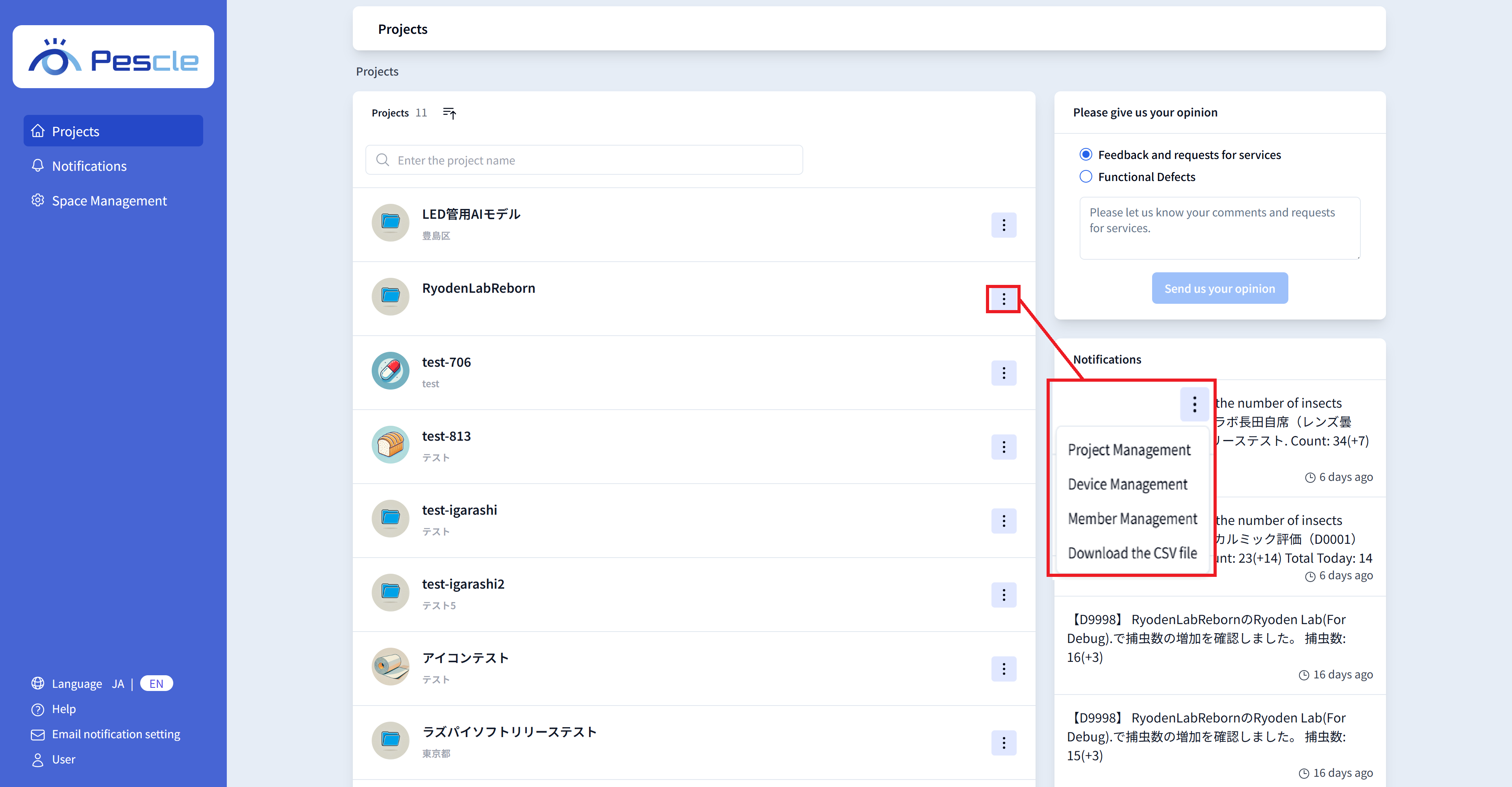 Register, edit, and delete insect trap cameras