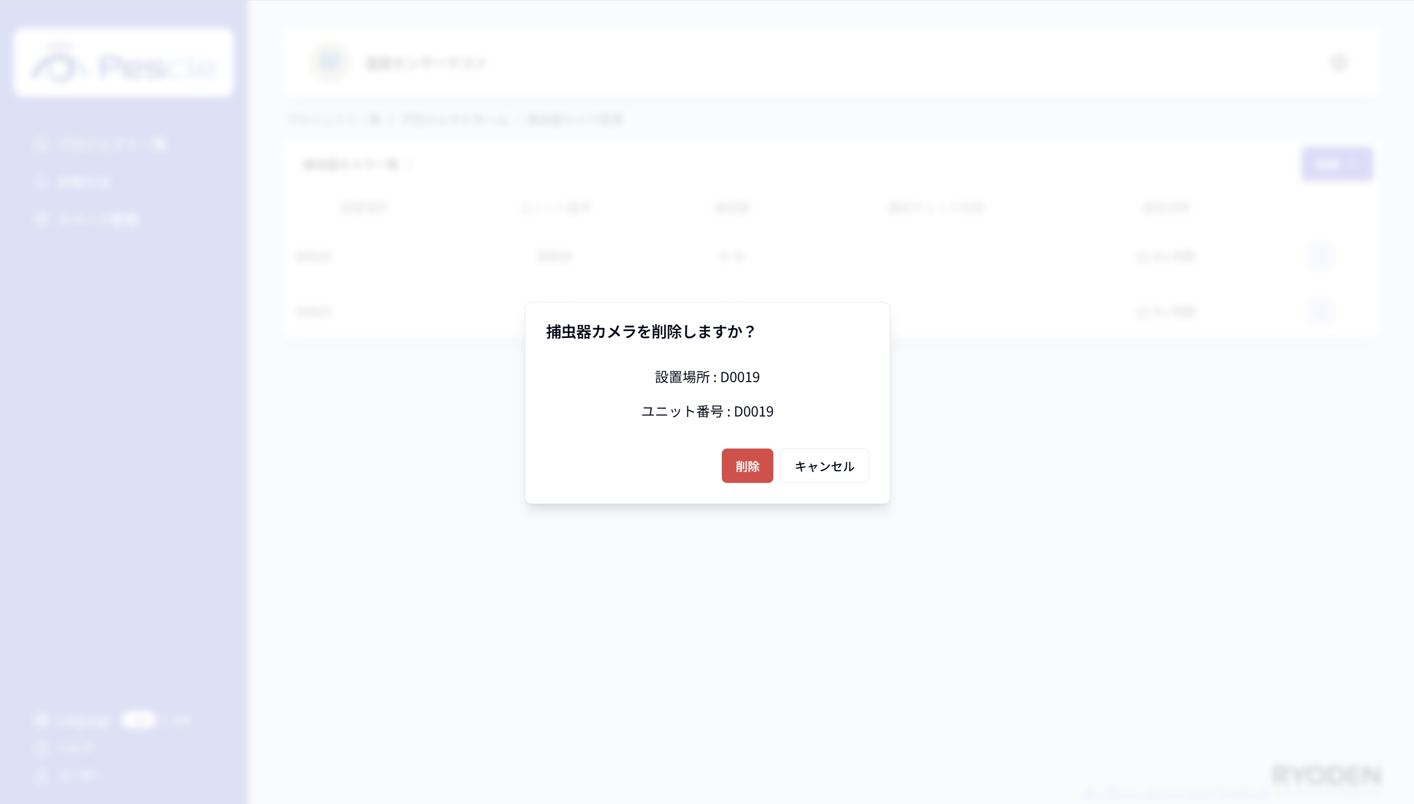 捕虫器カメラを削除するか確認するダイアログが表示されたら、 「削除」 ボタンをクリックします。