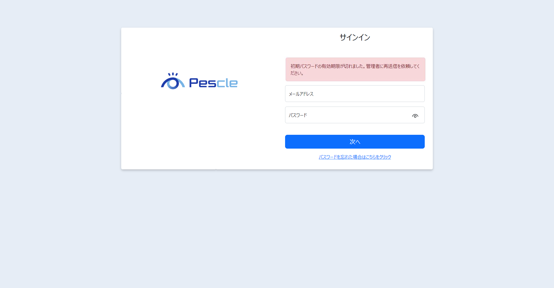 招待メールに記載された初期パスワードの有効期限は1週間です。 有効期限が切れたパスワードでサインインしようとしても、下図のようにサインインできません。