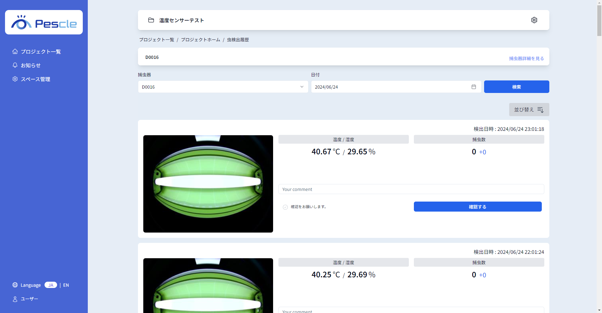 虫検出履歴にコメントするには を参照してください。
